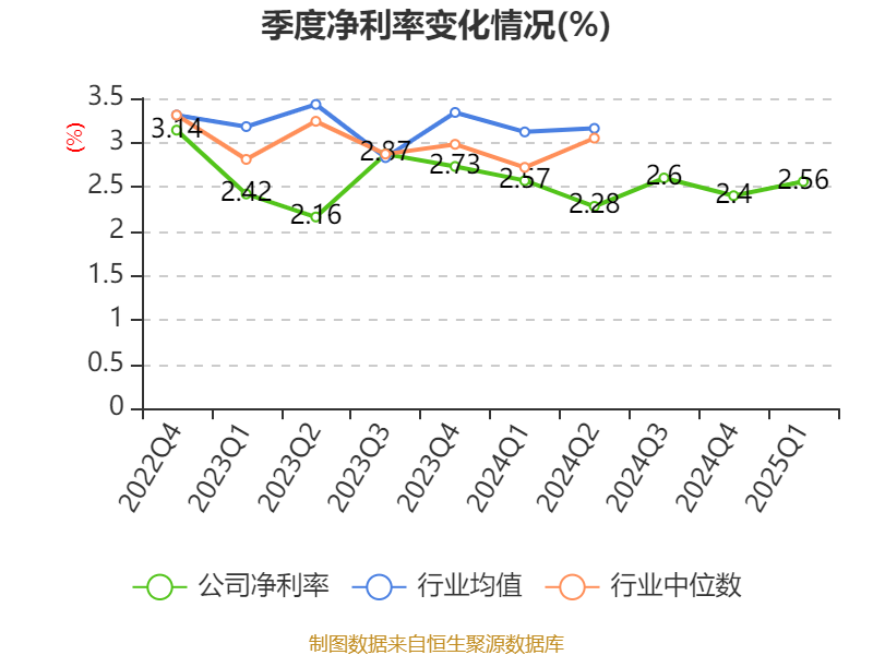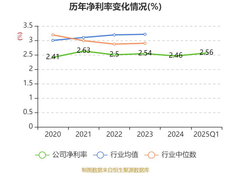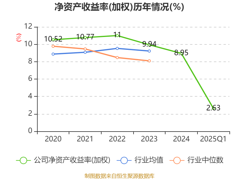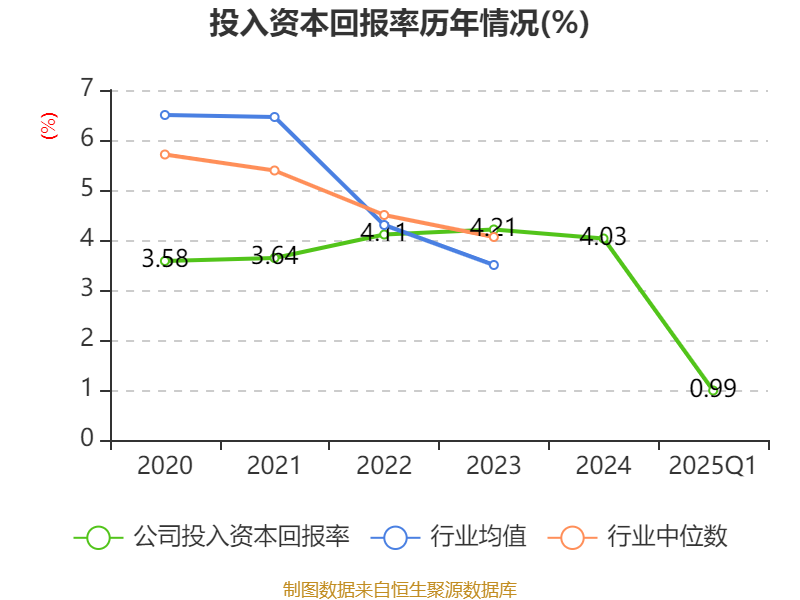 盈利能力方面, 2025年一季度公司加权平均净资产收益率为2.63%,同比下降0.17个百分点。公司2025年第一季度投入资本回报率为0.99%,较上年同期下降0.06个百分点。