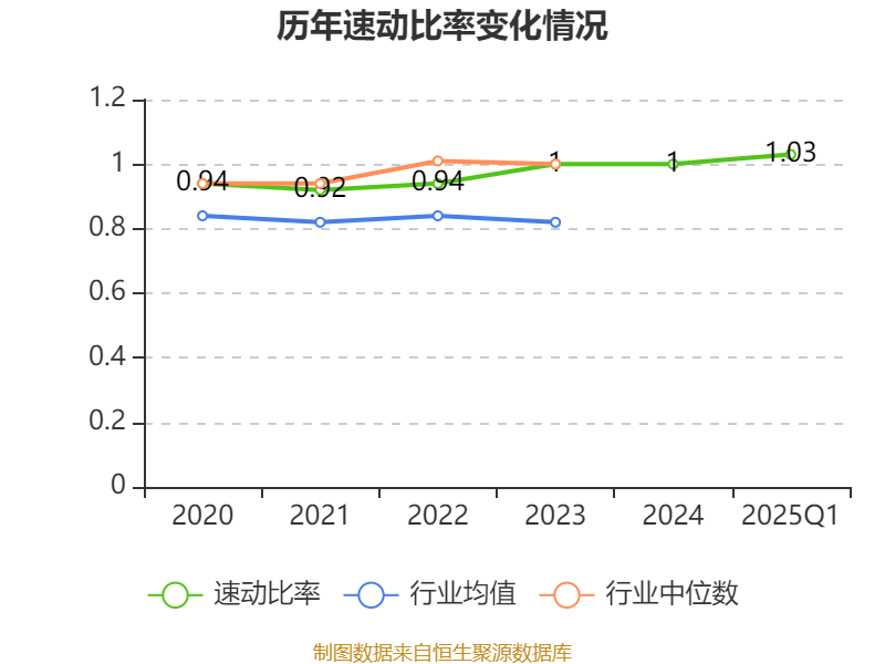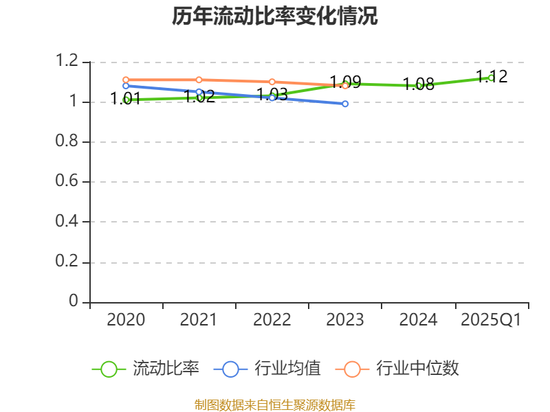 2025年第一季度,公司流动比率为1.12,速动比率为1.03。