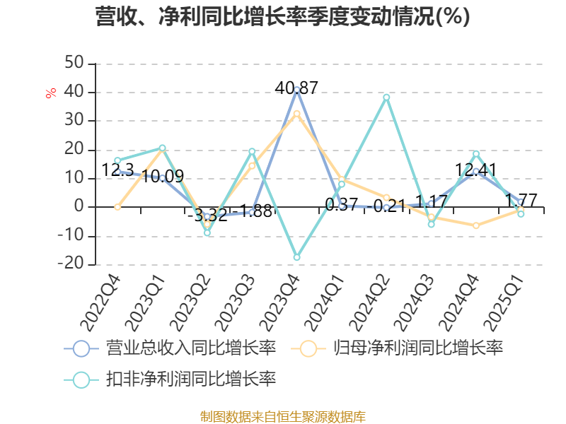 负债重大变化方面,截至2025年一季度末,公司短期借款较上年末增加44.66%,占公司总资产比重上升3个百分点;应付票据及应付账款较上年末减少2.59%,占公司总资产比重下降2.43个百分点;长期借款较上年末增加11.33%,占公司总资产比重上升0.74个百分点;合同负债较上年末增加0.42%,占公司总资产比重下降0.38个百分点。