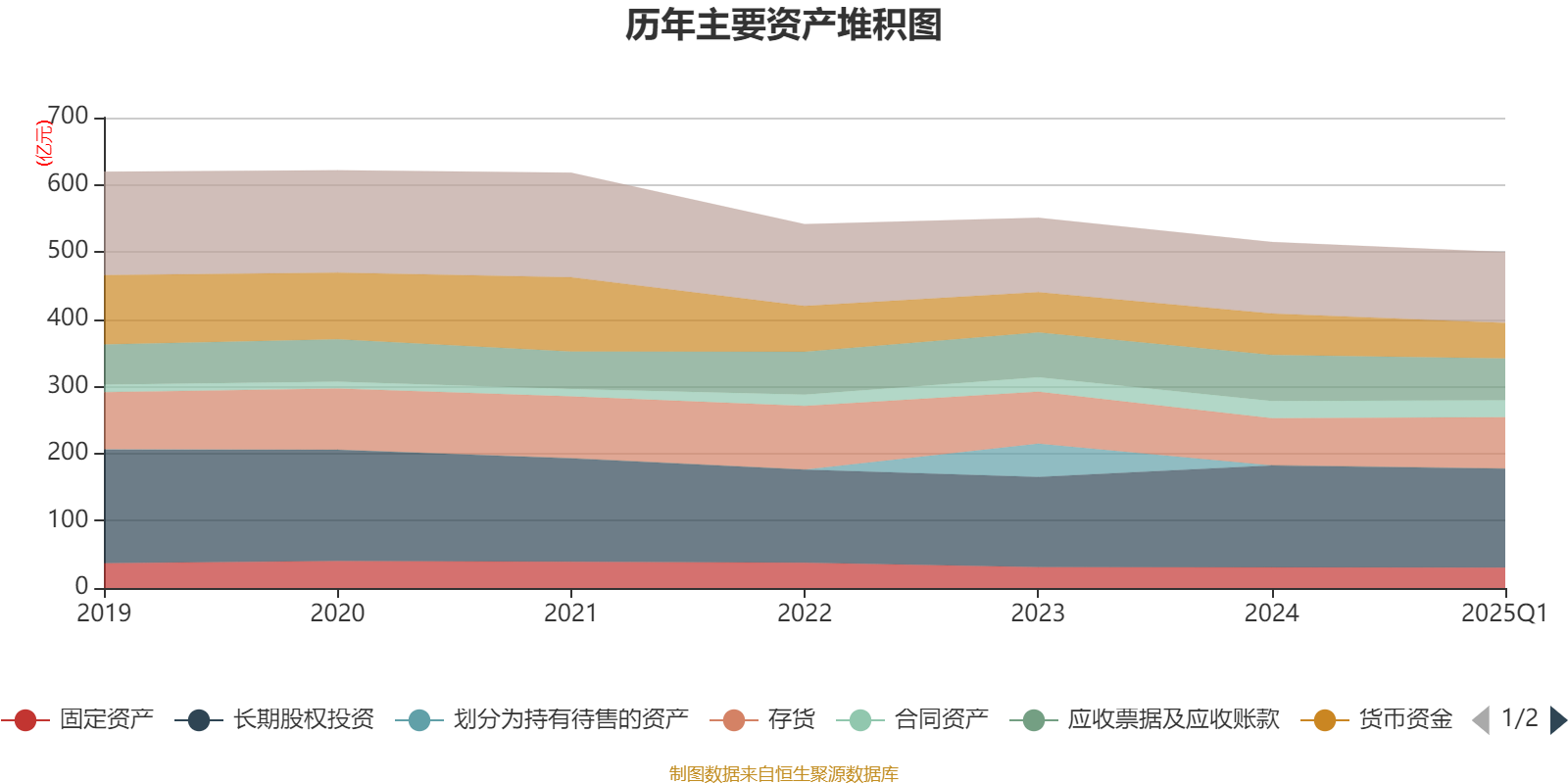 资产重大变化方面,截至2025年一季度末,公司存货较上年末增加9.26%,占公司总资产比重上升1.7个百分点;货币资金较上年末减少13.68%,占公司总资产比重下降1.33个百分点;交易性金融资产合计较上年末减少44.04%,占公司总资产比重下降0.96个百分点;应收票据及应收账款较上年末减少9.16%,占公司总资产比重下降0.86个百分点。