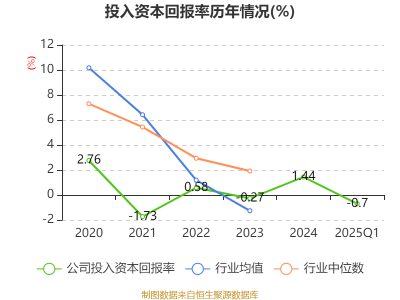 盈利能力方面, 2025年一季度公司加权平均净资产收益率为-1.74%,同比下降0.63个百分点。公司2025年第一季度投入资本回报率为-0.7%,较上年同期下降0.61个百分点。