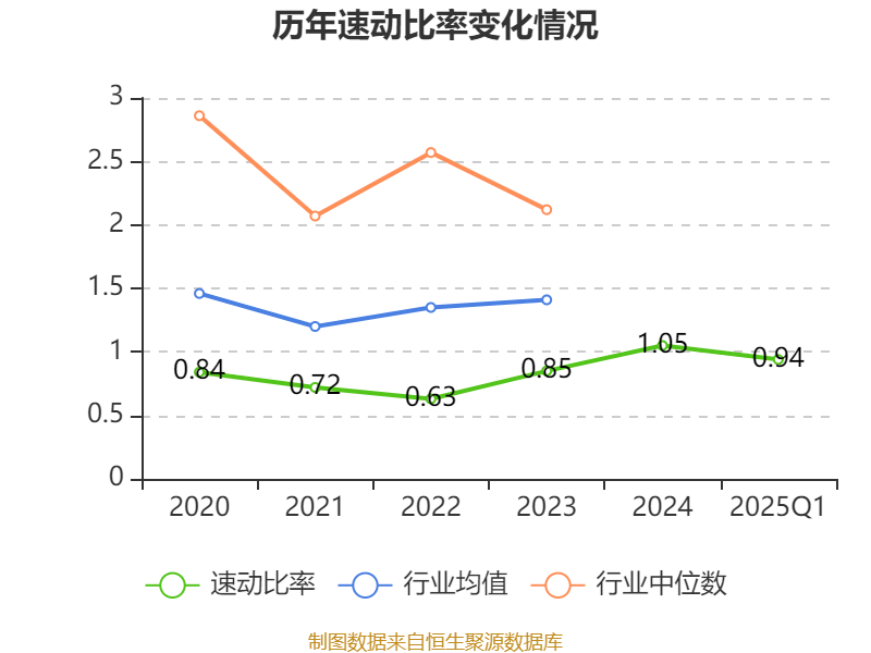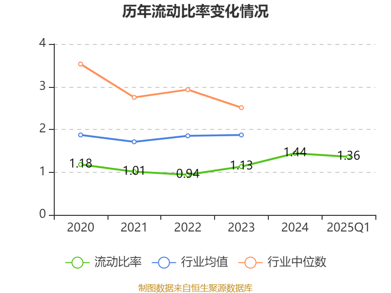 2025年第一季度,公司流动比率为1.36,速动比率为0.94。
