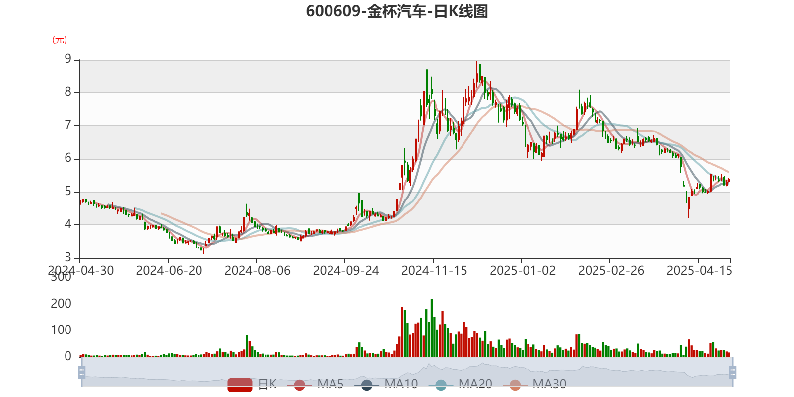 以4月29日收盘价计算,金杯汽车目前市盈率(TTM)约为17.95倍,市净率(LF)约4.69倍,市销率(TTM)约1.54倍。