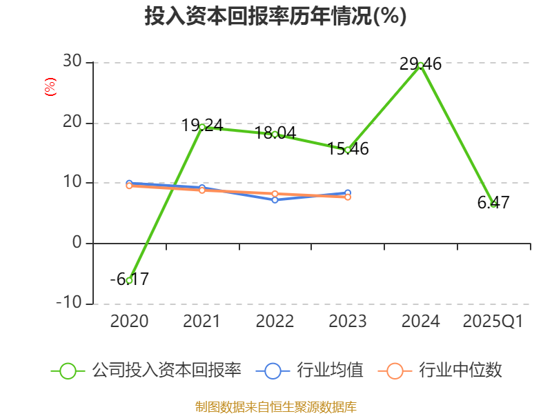 盈利能力方面, 2025年一季度公司加权平均净资产收益率为5.35%,同比下降1.41个百分点。公司2025年第一季度投入资本回报率为6.47%,较上年同期上升1.1个百分点。
