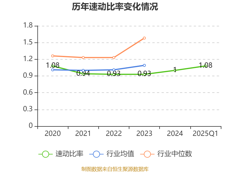 2025年第一季度,公司流动比率为1.18,速动比率为1.08。