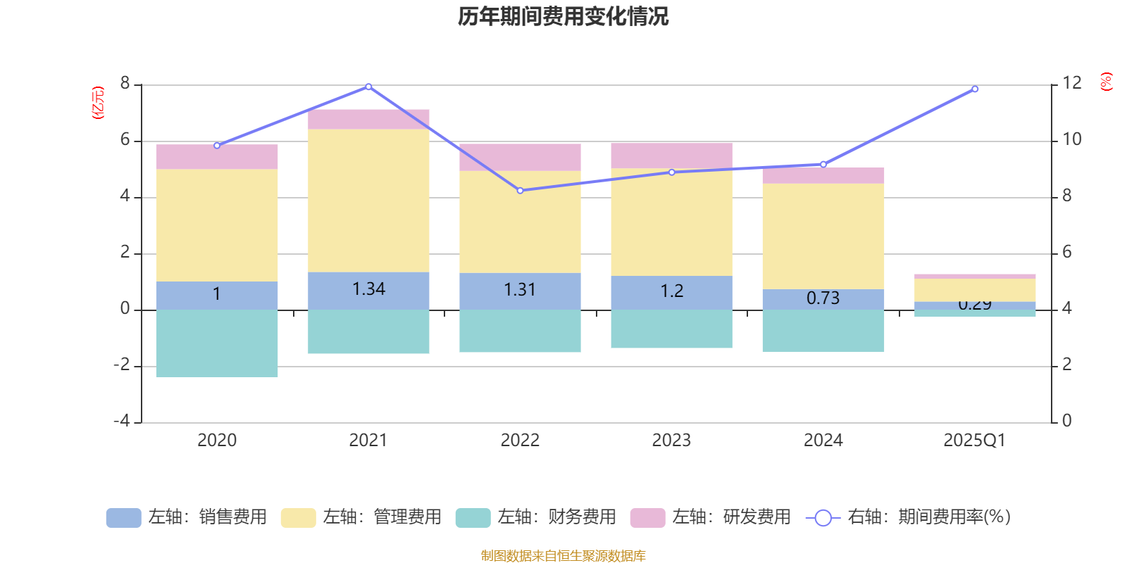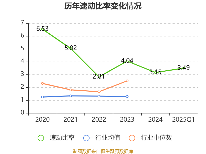 2025年第一季度,公司流动比率为4.22,速动比率为3.49。