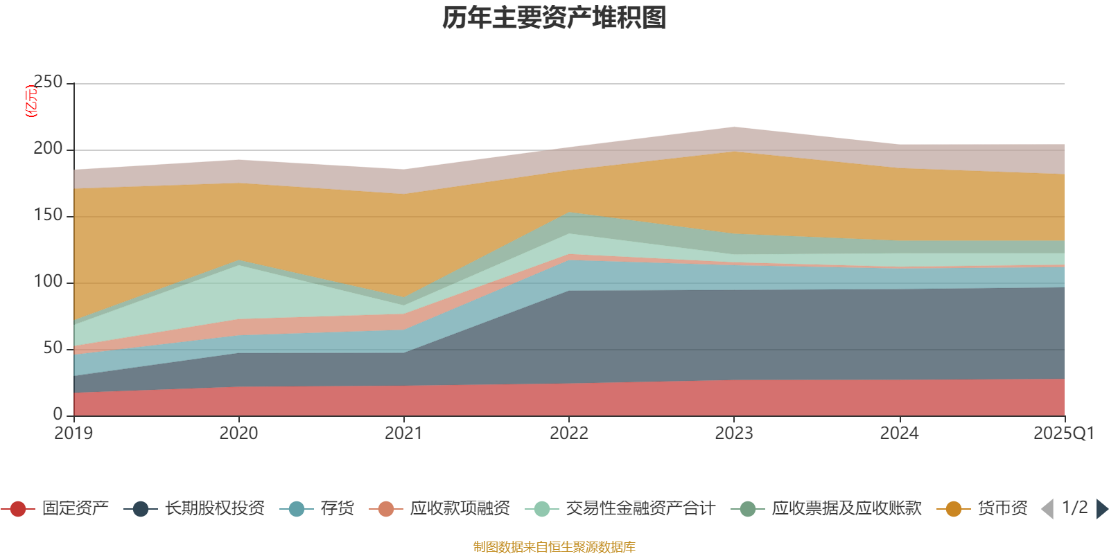 资产重大变化方面,截至2025年一季度末,公司货币资金较上年末减少8.41%,占公司总资产比重下降2.27个百分点;其他非流动资产较上年末增加822.75%,占公司总资产比重上升2.2个百分点;交易性金融资产合计较上年末减少15.16%,占公司总资产比重下降0.76个百分点;预付款项较上年末增加120.08%,占公司总资产比重上升0.47个百分点。