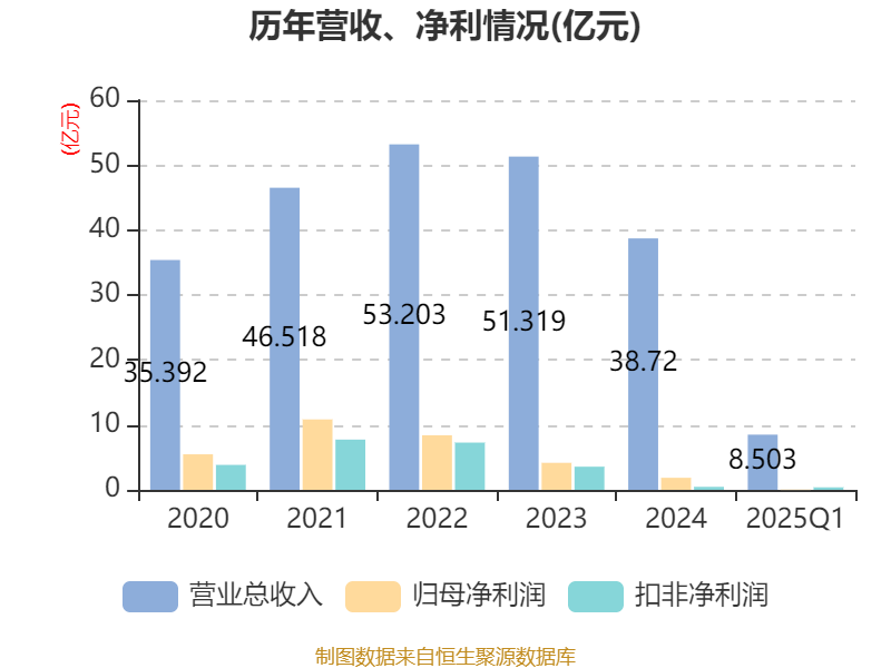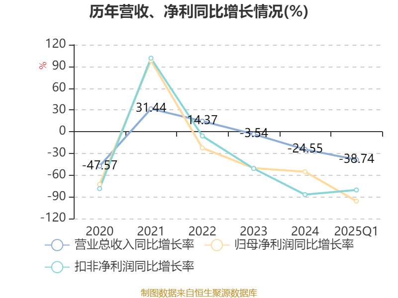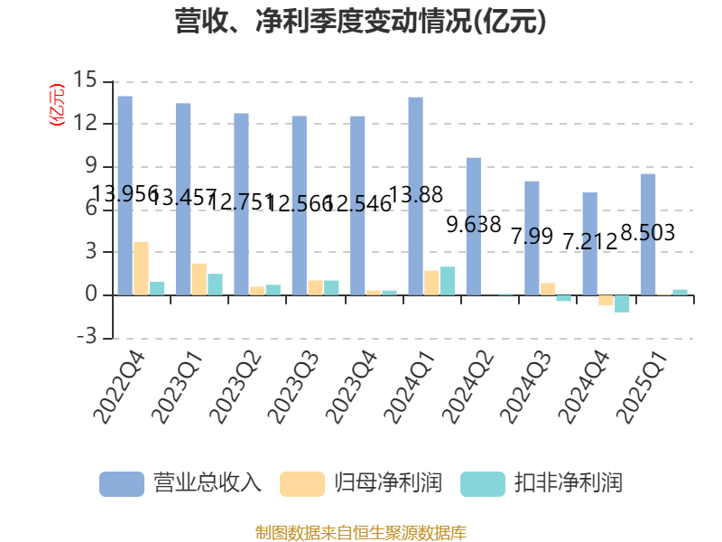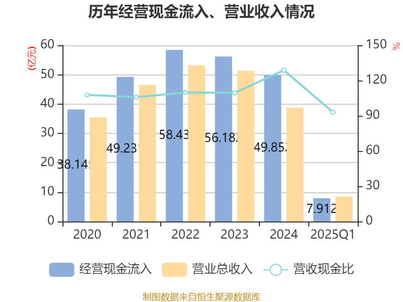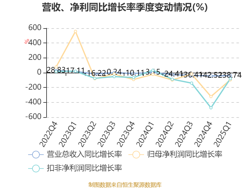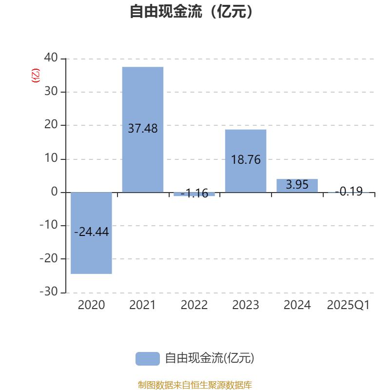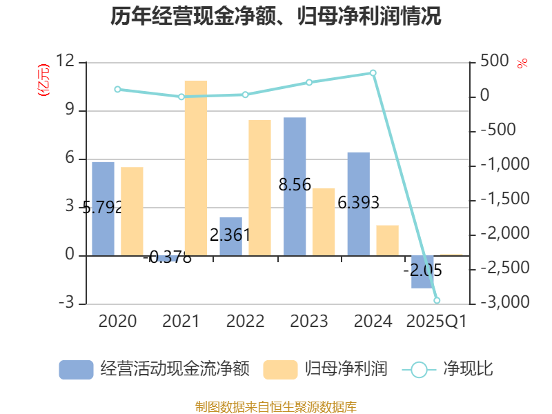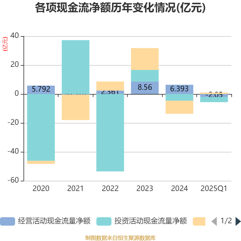 截至2025年一季度末,公司经营活动现金流净额为-2.05亿元,同比减少1.86亿元;筹资活动现金流净额9942.37万元,同比减少3.48亿元;投资活动现金流净额-3.6亿元,上年同期为-1641.65万元。