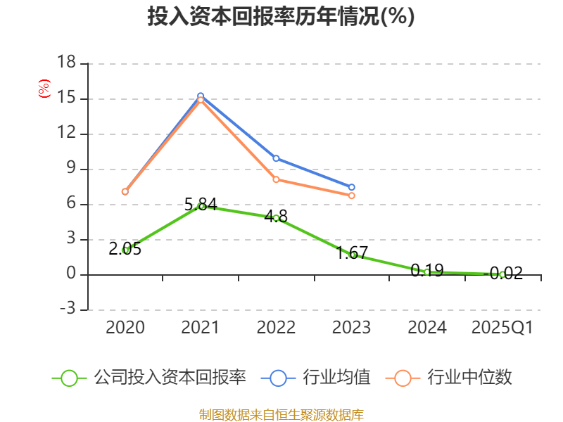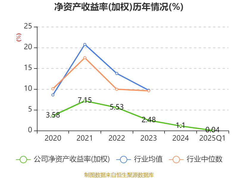 盈利能力方面, 2025年一季度公司加权平均净资产收益率为0.04%,同比下降0.96个百分点。公司2025年第一季度投入资本回报率为-0.02%,较上年同期下降0.74个百分点。