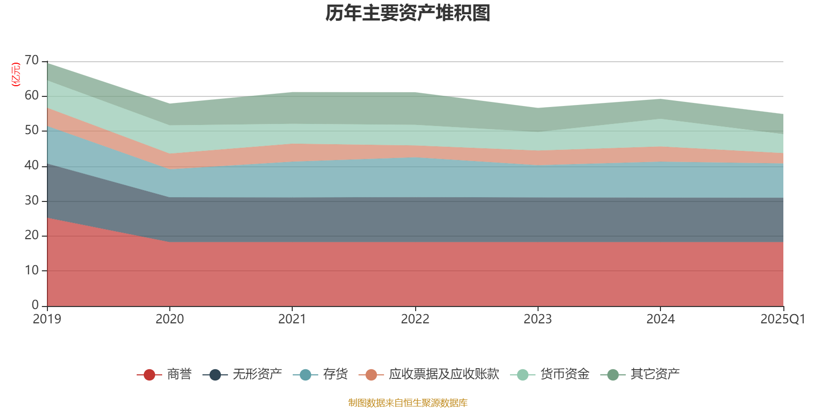 资产重大变化方面,截至2025年一季度末,公司货币资金较上年末减少31.23%,占公司总资产比重下降3.46个百分点;商誉较上年末没有变化,占公司总资产比重上升2.42个百分点;应收票据及应收账款较上年末减少31.7%,占公司总资产比重下降1.93个百分点;无形资产较上年末减少0.04%,占公司总资产比重上升1.68个百分点。