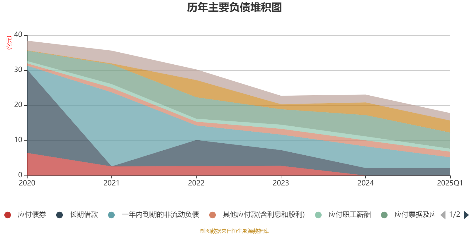 负债重大变化方面,截至2025年一季度末,公司一年内到期的非流动负债较上年末减少49.93%,占公司总资产比重下降4.8个百分点;应付票据及应付账款较上年末减少24.11%,占公司总资产比重下降1.86个百分点;应付职工薪酬较上年末减少23.4%,占公司总资产比重下降0.33个百分点;合同负债较上年末减少31.39%,占公司总资产比重下降0.32个百分点。