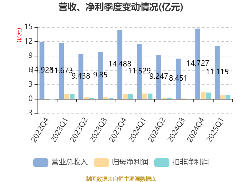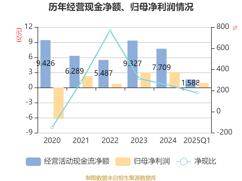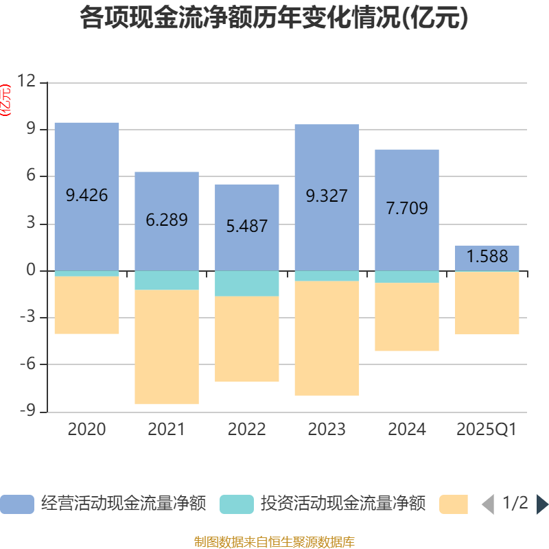 截至2025年一季度末,公司经营活动现金流净额为1.59亿元,同比下降40.76%;筹资活动现金流净额-3.97亿元,同比减少2.42亿元;投资活动现金流净额-877.15万元,上年同期为-1035.89万元。