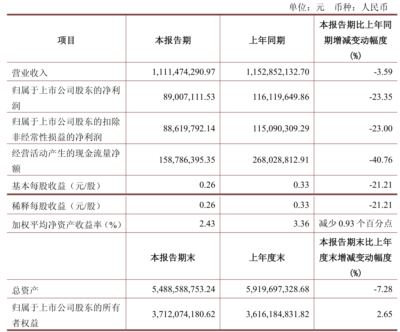 中证智能财讯锦泓集团(603518)4月30日披露2025年第一季度报告。公司实现营业总收入11.11亿元,同比下降3.59%;归母净利润8900.71万元,同比下降23.35%;扣非净利润8861.98万元,同比下降23.00%;经营活动产生的现金流量净额为1.59亿元,同比下降40.76%;报告期内,锦泓集团基本每股收益为0.26元,加权平均净资产收益率为2.43%。