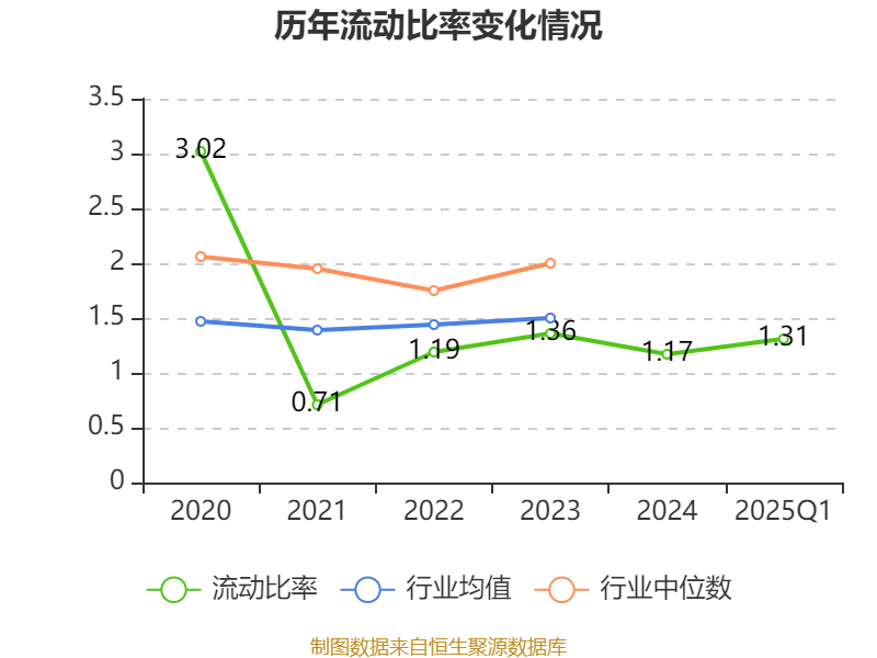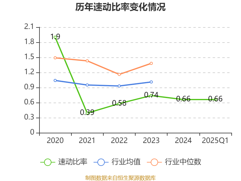 2025年第一季度,公司流动比率为1.31,速动比率为0.66。