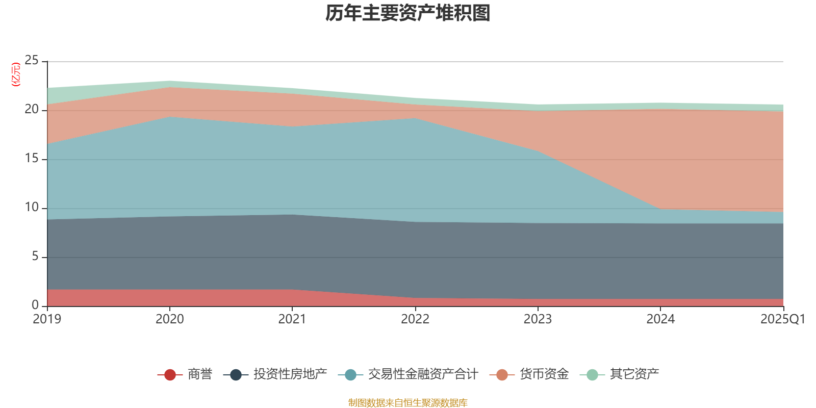 资产重大变化方面,截至2025年一季度末,公司交易性金融资产合计较上年末减少19.58%,占公司总资产比重下降1.32个百分点;货币资金较上年末增加0.09%,占公司总资产比重上升0.52个百分点;应收票据及应收账款较上年末增加56.36%,占公司总资产比重上升0.38个百分点;投资性房地产较上年末没有变化,占公司总资产比重上升0.35个百分点。