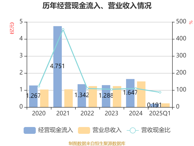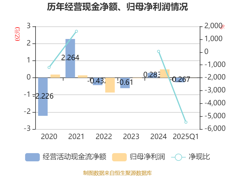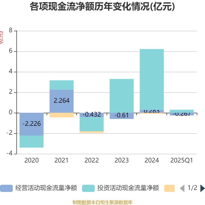 截至2025年一季度末,公司经营活动现金流净额为-2668.13万元,同比减少1991.34万元;筹资活动现金流净额-81.9万元,同比减少67.24万元;投资活动现金流净额2907.05万元,上年同期为1276.51万元。