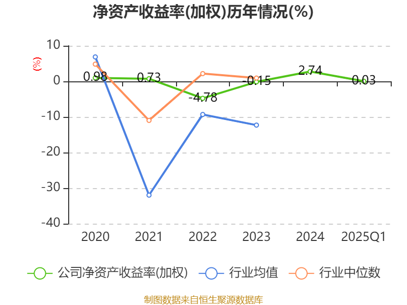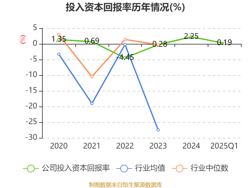 盈利能力方面, 2025年一季度公司加权平均净资产收益率为0.03%,同比下降0.28个百分点。公司2025年第一季度投入资本回报率为0.19%,较上年同期下降0.07个百分点。