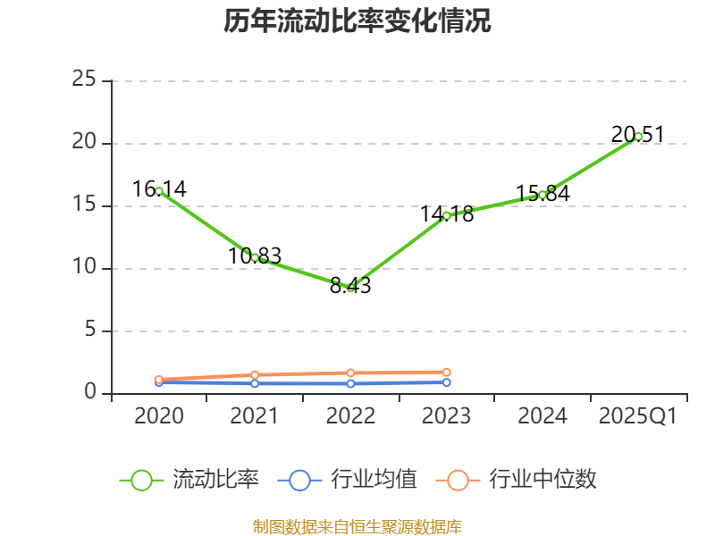2025年第一季度,公司流动比率为20.51,速动比率为20.16。