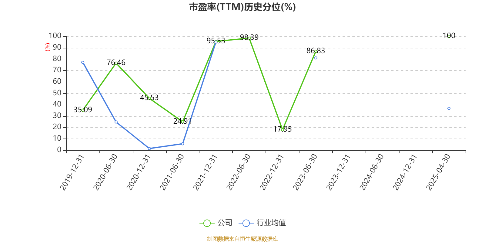市盈率、市净率为负时,不显示当期分位数,会导致折线图中断。