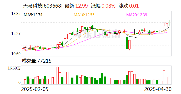 值得注意的是,中登公司数据显示,截至2025年4月25日,天马科技12.58%股份处于质押状态。年报显示,第一大股东陈庆堂质押5700万股公司股份,占其全部持股的59.44%;第二大股东福建天马投资发展有限公司质押1345万股公司股份,占其全部持股的22.5%。
