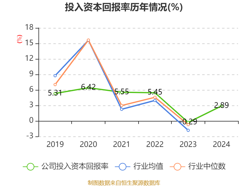数据显示,2024年公司加权平均净资产收益率为1.18%,较上年同期上升10.7个百分点。公司2024年投入资本回报率为2.89%,较上年同期上升3.18个百分点。
