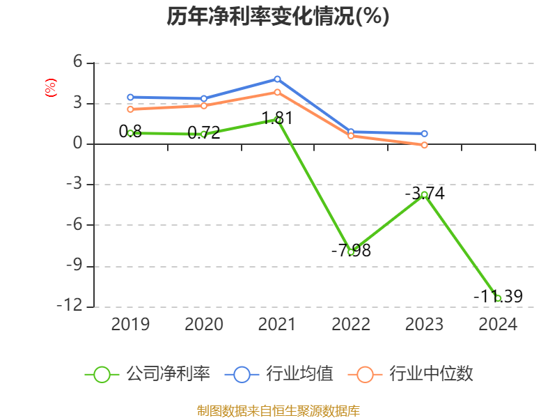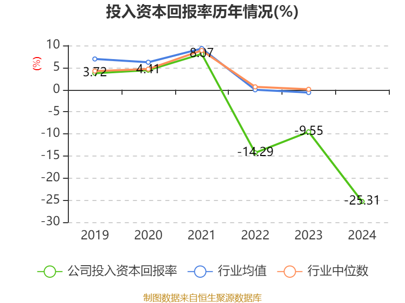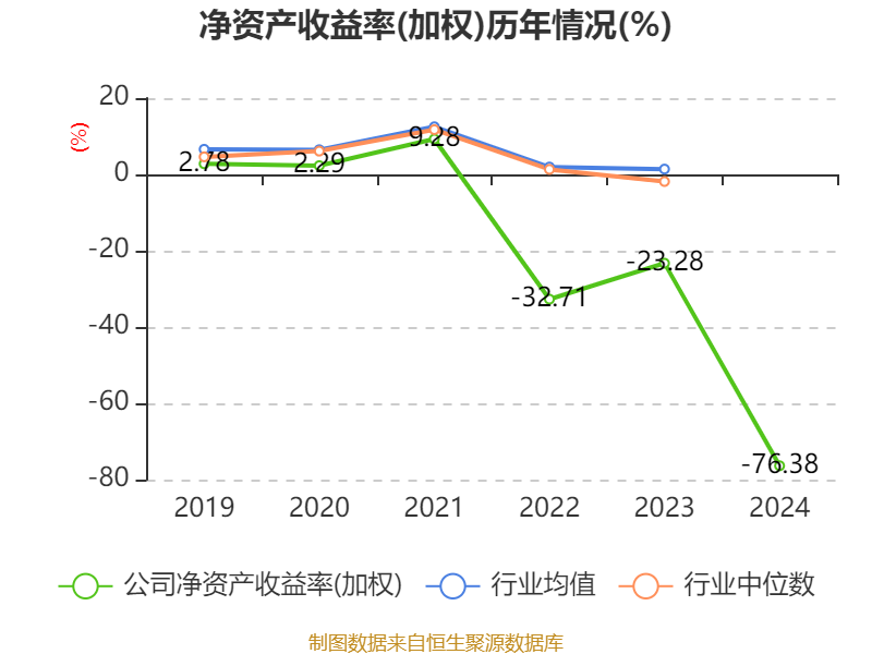 数据显示,2024年公司加权平均净资产收益率为-76.38%,较上年同期下降53.1个百分点。公司2024年投入资本回报率为-25.31%,较上年同期下降15.76个百分点。