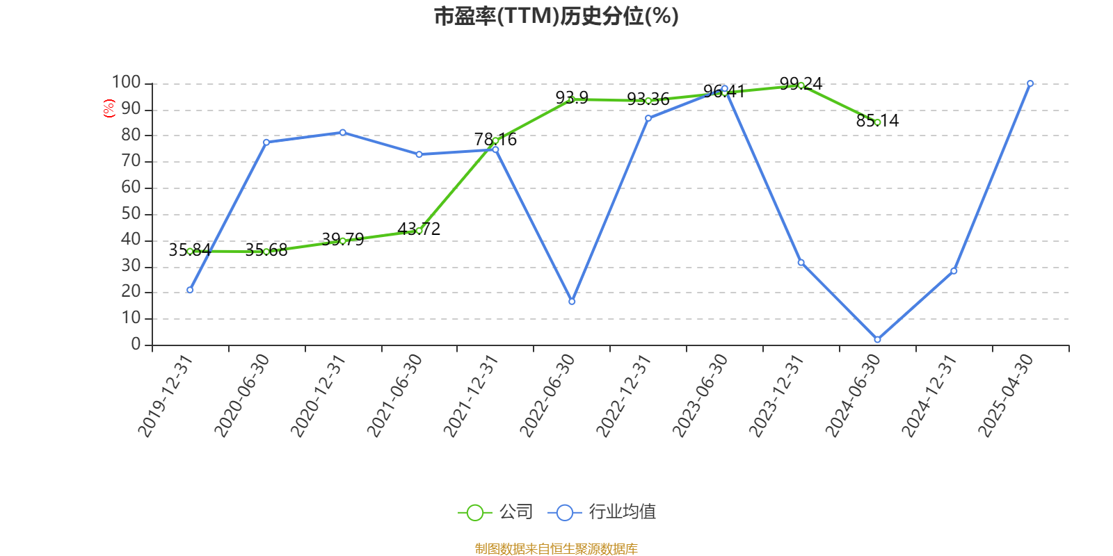 市盈率、市净率为负时,不显示当期分位数,会导致折线图中断。