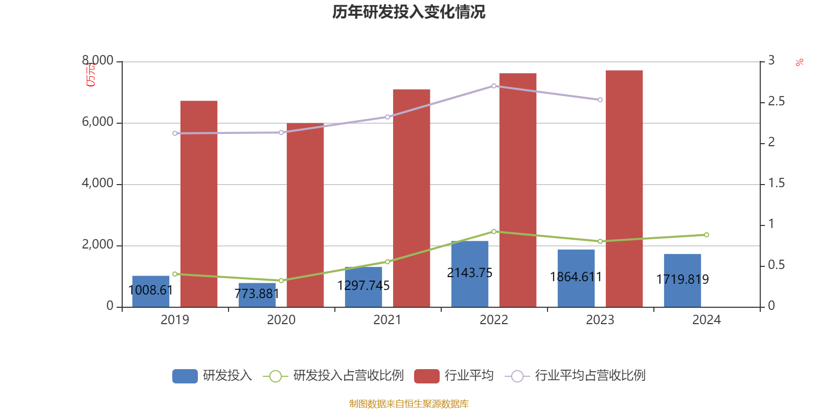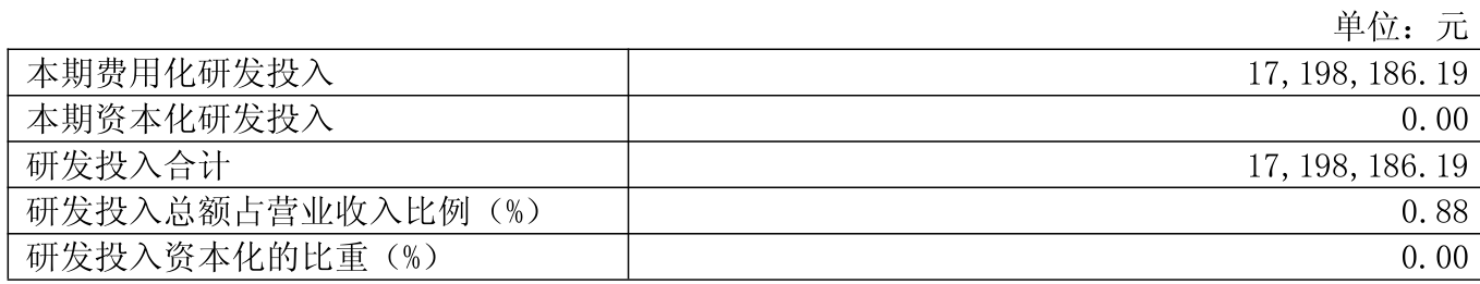 2024年全年,公司研发投入金额为1719.82万元,同比下降7.77%;研发投入占营业收入比例为0.88%,相比上年同期上升0.08个百分点。此外,公司全年研发投入资本化率为0%。