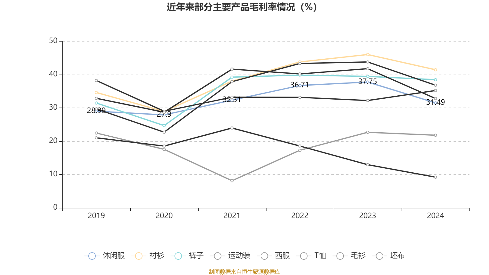 资料显示,公司主营业务为男装的生产与销售。