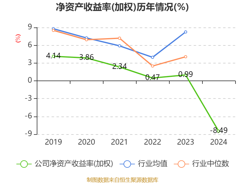 数据显示,2024年公司加权平均净资产收益率为-8.49%,较上年同期下降9.48个百分点。公司2024年投入资本回报率为-4.97%,较上年同期下降6.03个百分点。