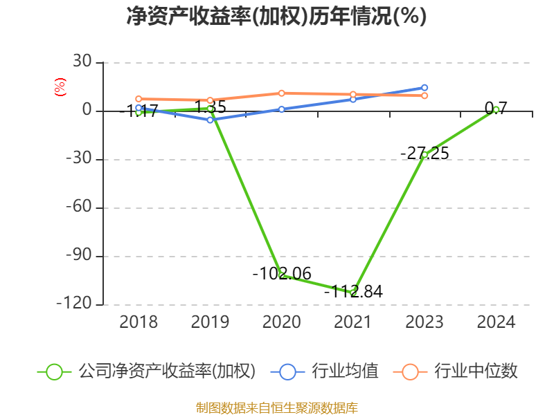 数据显示,2024年公司加权平均净资产收益率为0.7%,较上年同期上升27.95个百分点。公司2024年投入资本回报率为-0.14%,较上年同期下降36.36个百分点。