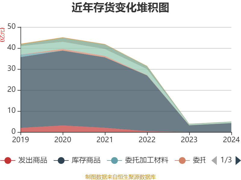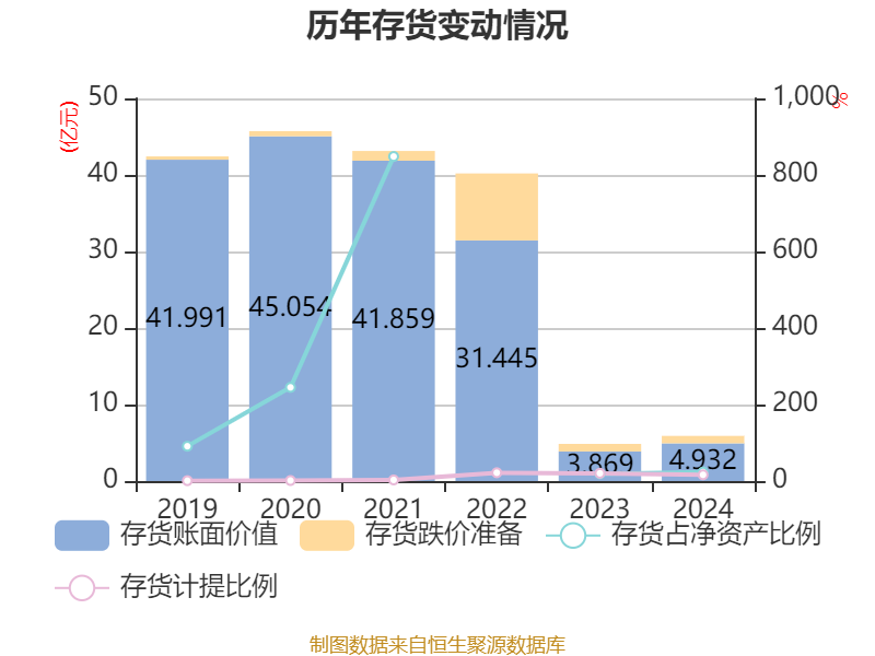 从存货变动来看,截至2024年末,公司存货账面价值为4.93亿元,占净资产的23.6%,较上年末增加1.06亿元。其中,存货跌价准备为9694.1万元,计提比例为16.43%。