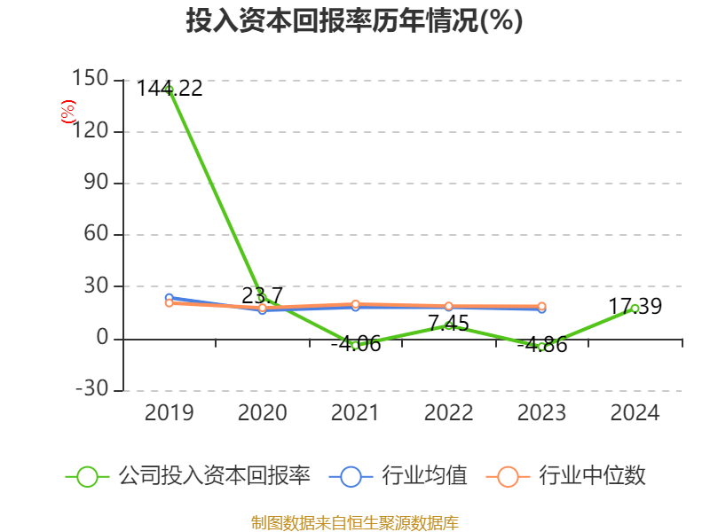 数据显示,2024年公司加权平均净资产收益率为20.27%,较上年同期上升32.05个百分点。公司2024年投入资本回报率为17.39%,较上年同期上升22.25个百分点。