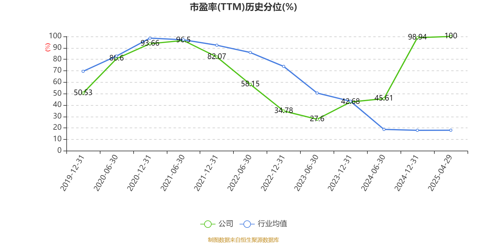 市盈率、市净率为负时,不显示当期分位数,会导致折线图中断。