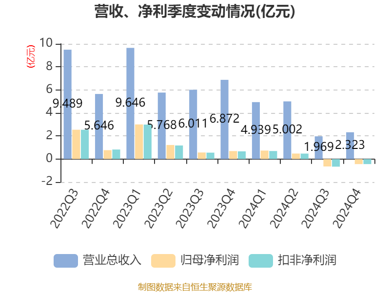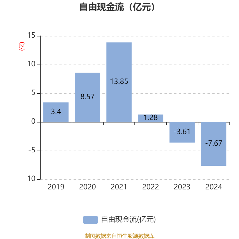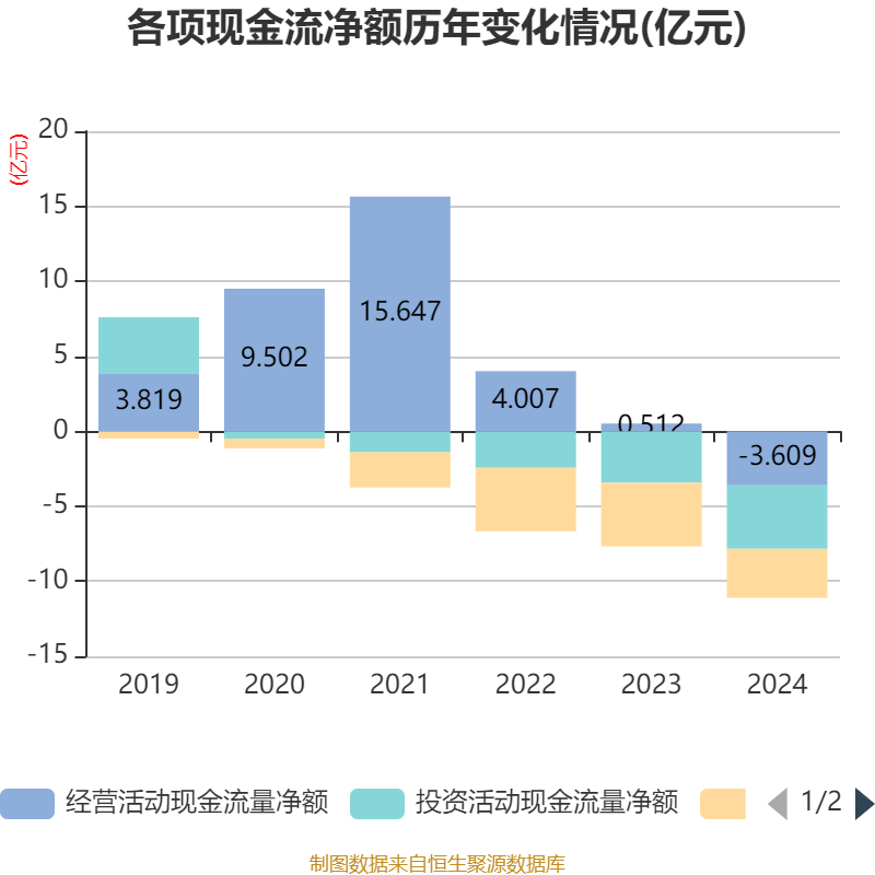 截至2024年,公司经营活动现金流净额为-3.61亿元,同比减少4.12亿元;筹资活动现金流净额-3.27亿元,同比增加9712万元;投资活动现金流净额-4.23亿元,上年同期为-3.43亿元。