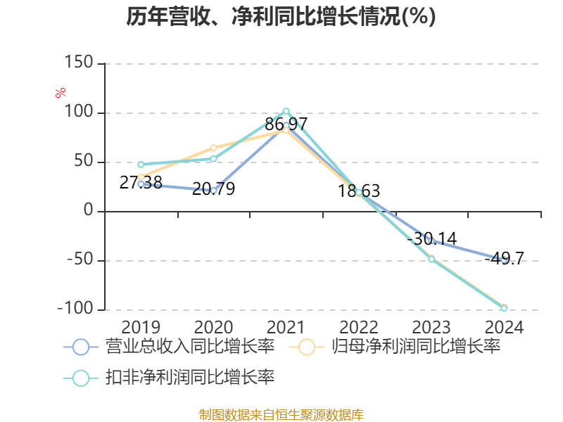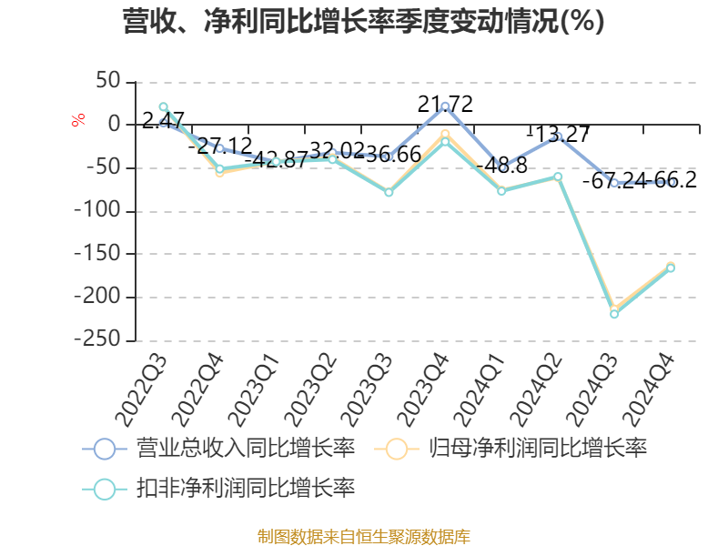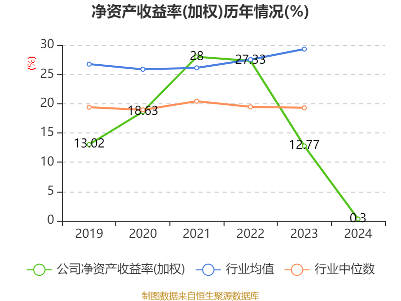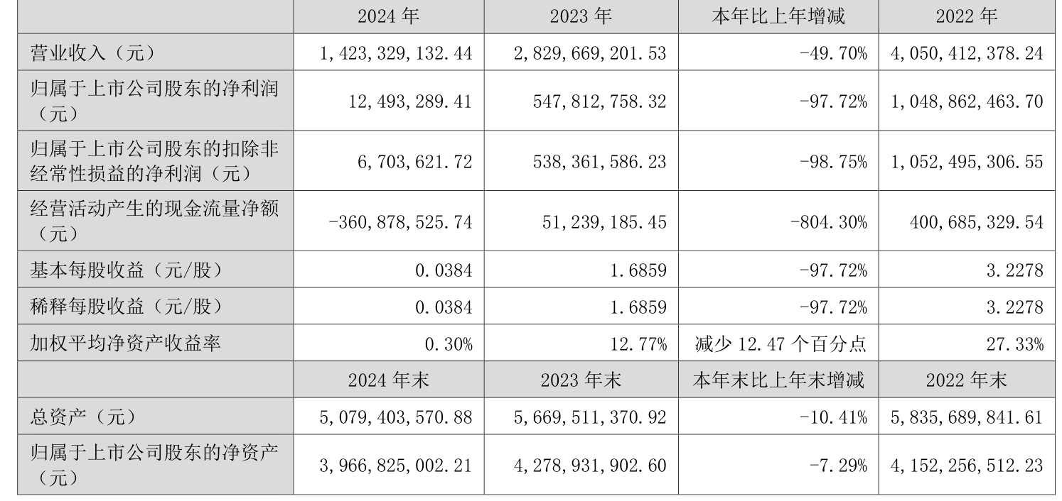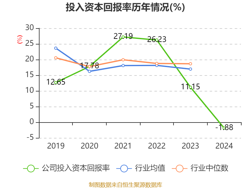 数据显示,2024年公司加权平均净资产收益率为0.3%,较上年同期下降12.47个百分点。公司2024年投入资本回报率为-1.88%,较上年同期下降13.03个百分点。