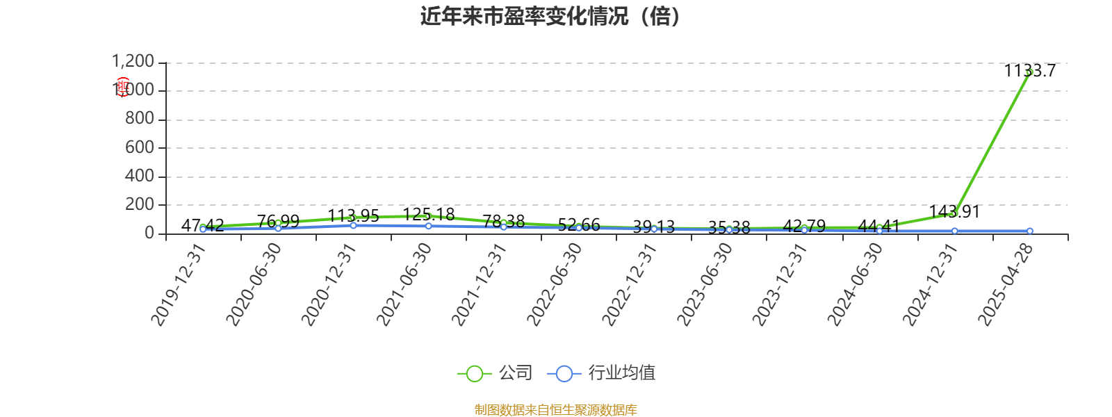 以4月28日收盘价计算,酒鬼酒目前市盈率(TTM)约为1133.7倍,市净率(LF)约3.57倍,市销率(TTM)约9.95倍。