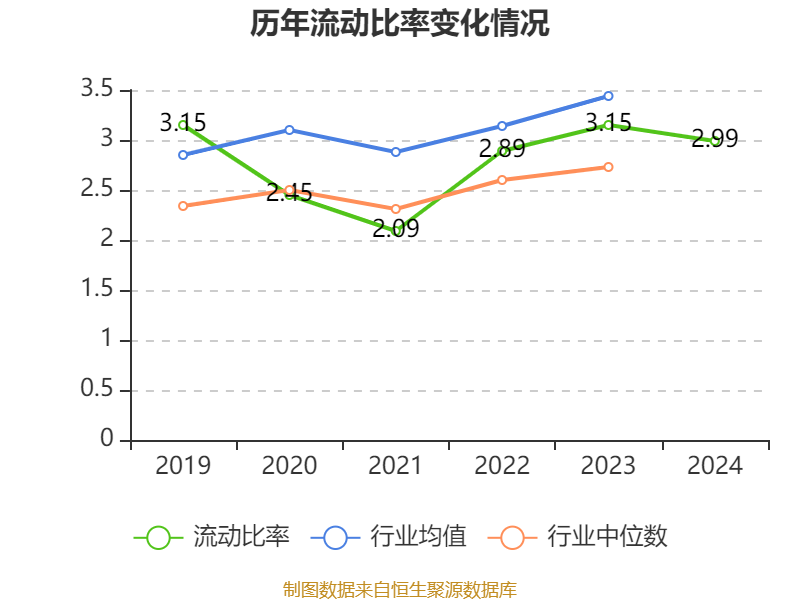 2024年,公司流动比率为2.99,速动比率为1.35。
