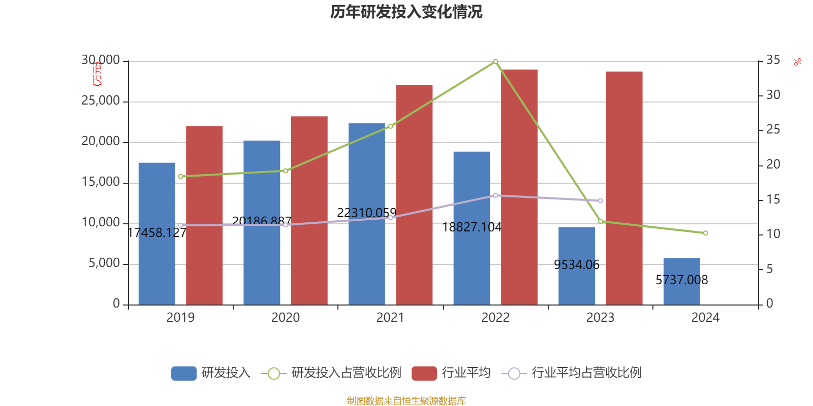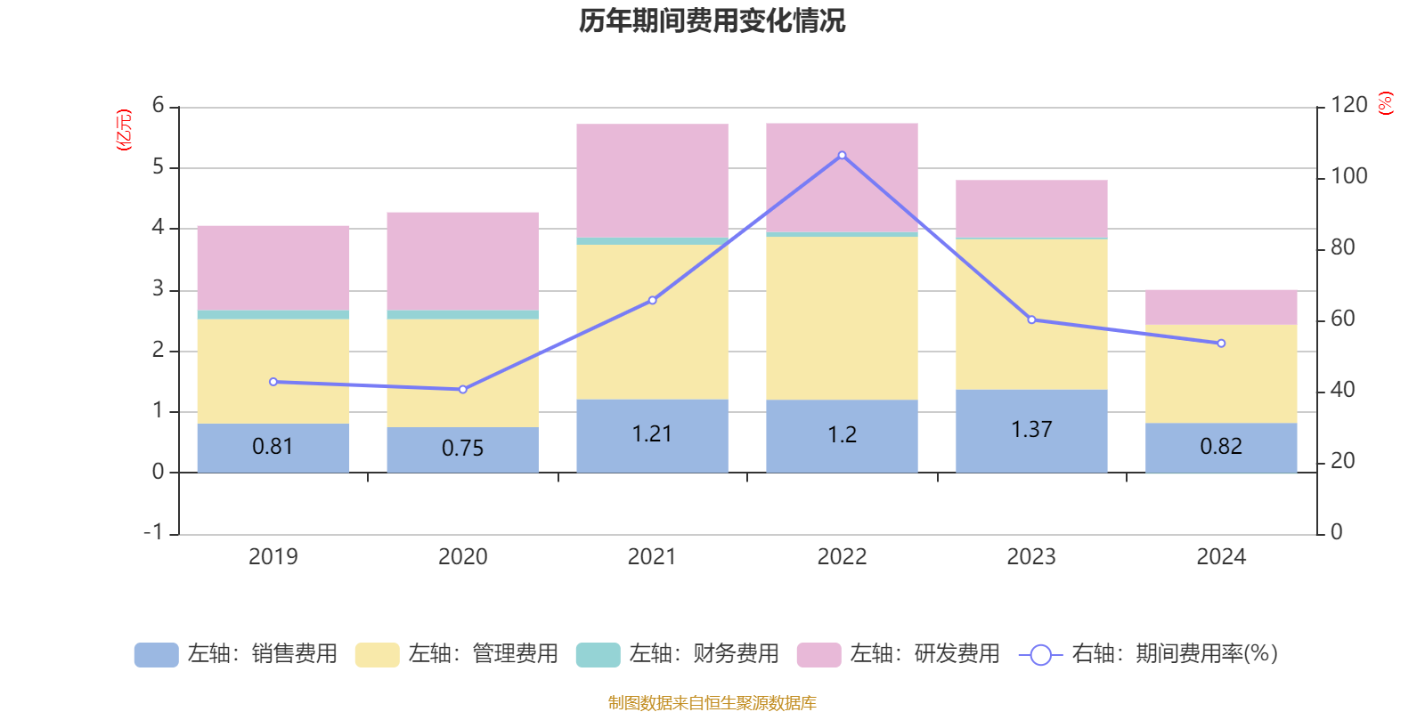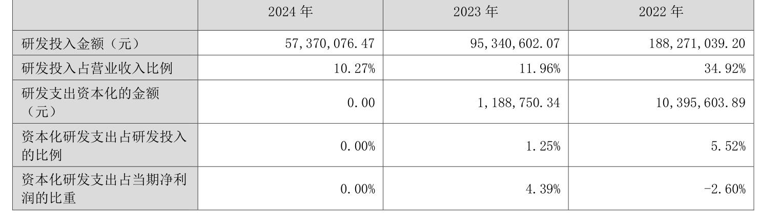 2024年全年,公司研发投入金额为5737.01万元,同比下降39.83%;研发投入占营业收入比例为10.27%,相比上年同期下降1.69个百分点。此外,公司全年研发投入资本化率为0%。