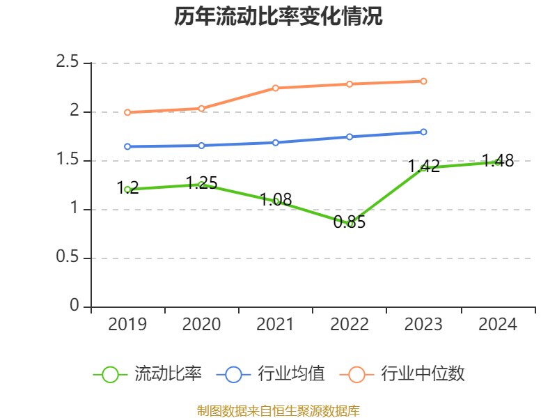 2024年,公司流动比率为1.48,速动比率为1.29。