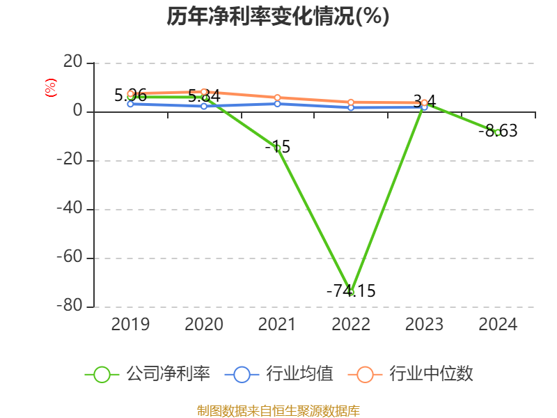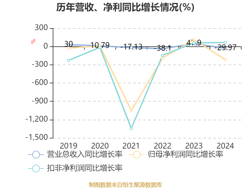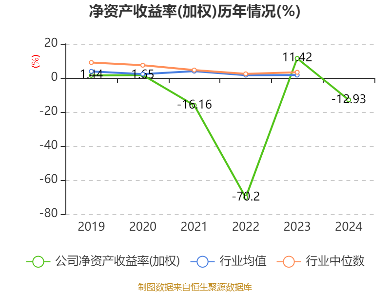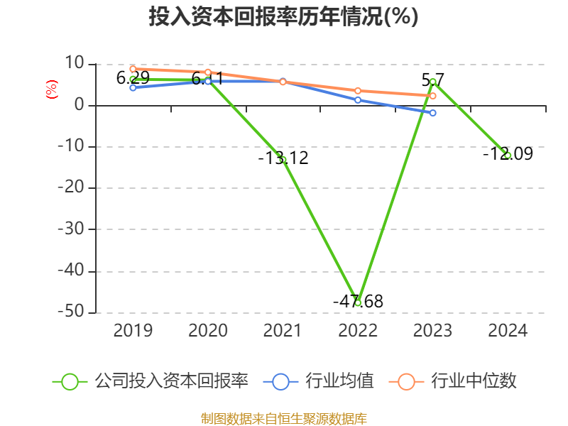 数据显示,2024年公司加权平均净资产收益率为-12.93%,较上年同期下降24.35个百分点。公司2024年投入资本回报率为-12.09%,较上年同期下降17.79个百分点。