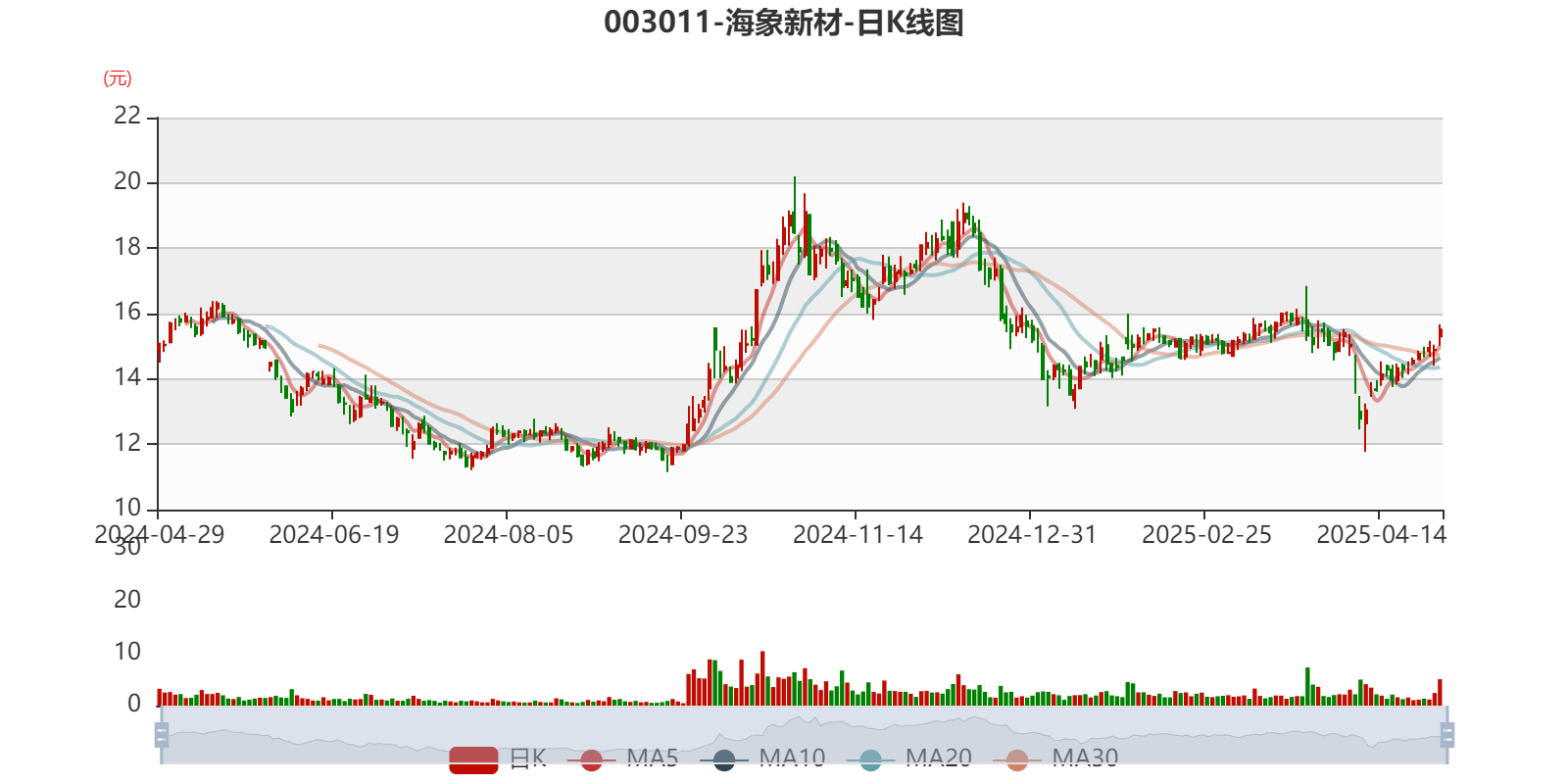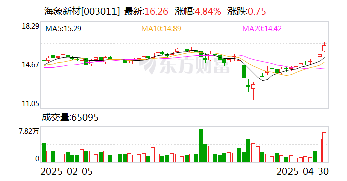 以4月28日收盘价计算,海象新材目前市盈率(TTM)约为30.52倍,市净率(LF)约1.08倍,市销率(TTM)约1.12倍。