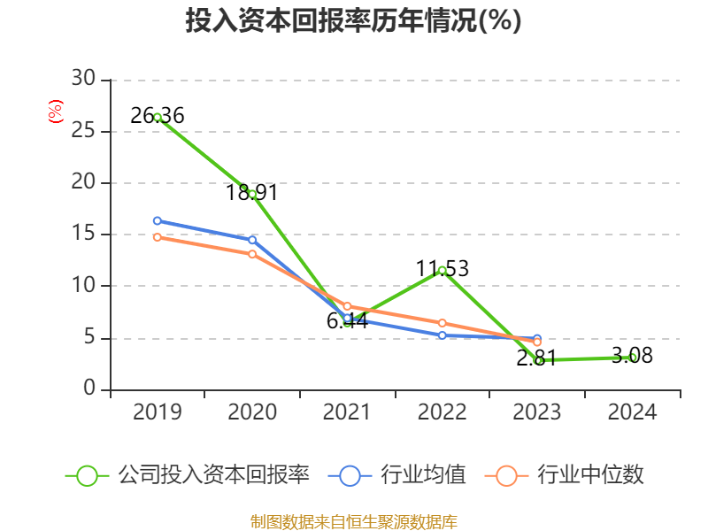 数据显示,2024年公司加权平均净资产收益率为3.53%,较上年同期上升0.42个百分点。公司2024年投入资本回报率为3.08%,较上年同期上升0.27个百分点。