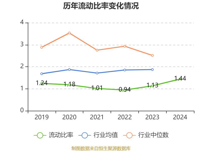 2024年,公司流动比率为1.44,速动比率为1.05。