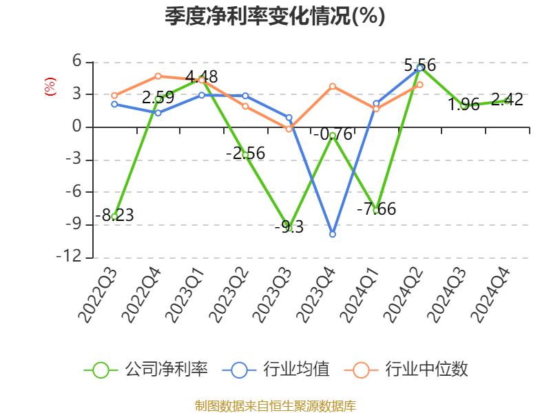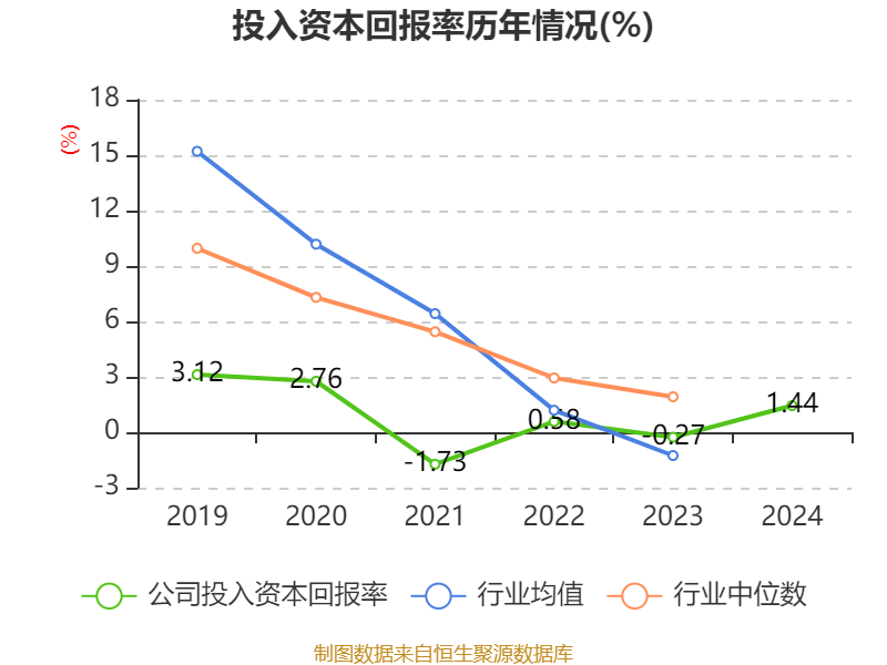 数据显示,2024年公司加权平均净资产收益率为0.91%,较上年同期上升6.15个百分点。公司2024年投入资本回报率为1.44%,较上年同期上升1.71个百分点。