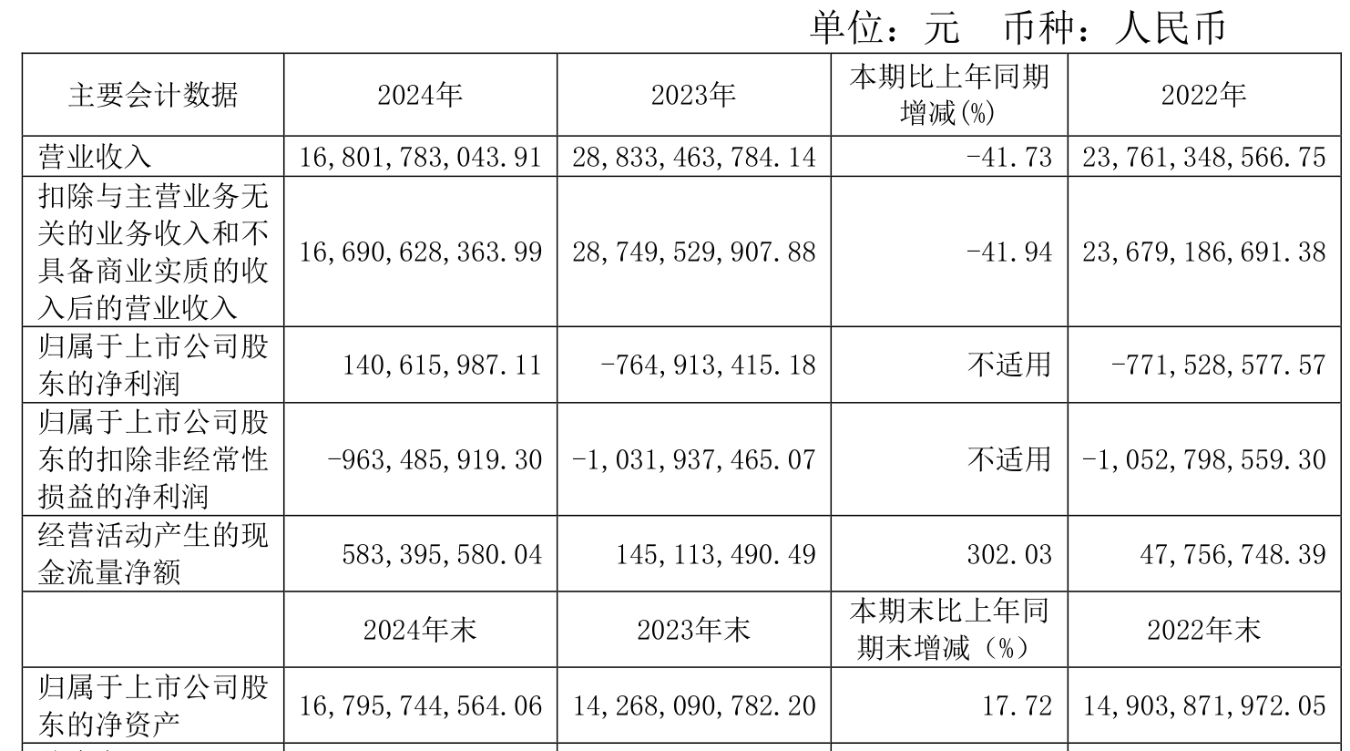 中证智能财讯同方股份(维权)(600100)4月29日披露2024年年度报告。2024年,公司实现营业总收入168.02亿元,同比下降41.73%;归母净利润1.41亿元,同比扭亏;扣非净利润亏损9.63亿元,上年同期亏损10.32亿元;经营活动产生的现金流量净额为5.83亿元,同比增长302.03%;报告期内,同方股份基本每股收益为0.042元,加权平均净资产收益率为0.91%。