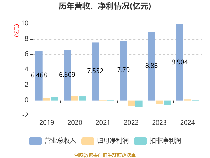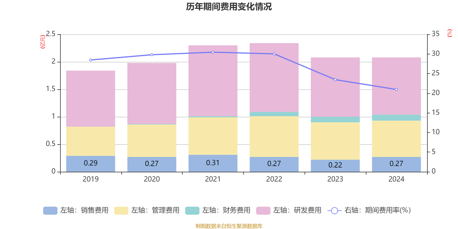 2024年全年,公司研发投入金额为1.04亿元,同比下降3.63%;研发投入占营业收入比例为10.47%,相比上年同期下降1.65个百分点。此外,公司全年研发投入资本化率为0%。