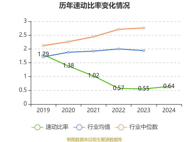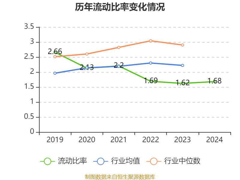 2024年,公司流动比率为1.68,速动比率为0.64。