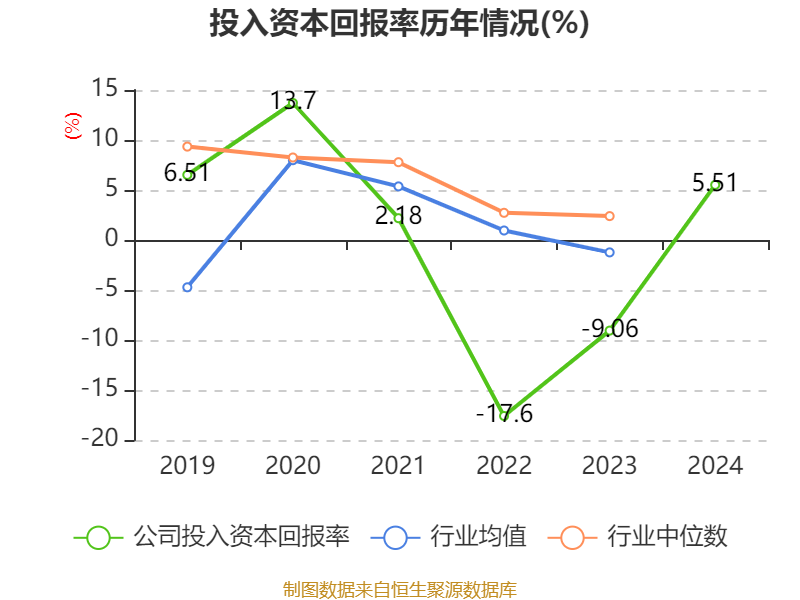 数据显示,2024年公司加权平均净资产收益率为4.04%,较上年同期上升16.03个百分点。公司2024年投入资本回报率为5.51%,较上年同期上升14.57个百分点。