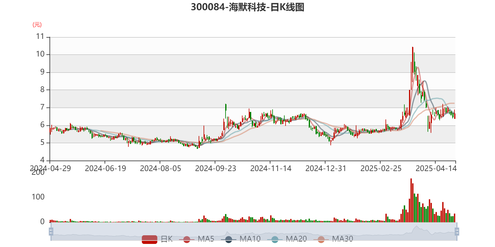 以4月28日收盘价计算,海默科技目前市盈率(TTM)约为-14.45倍,市净率(LF)约2.52倍,市销率(TTM)约5.5倍。
